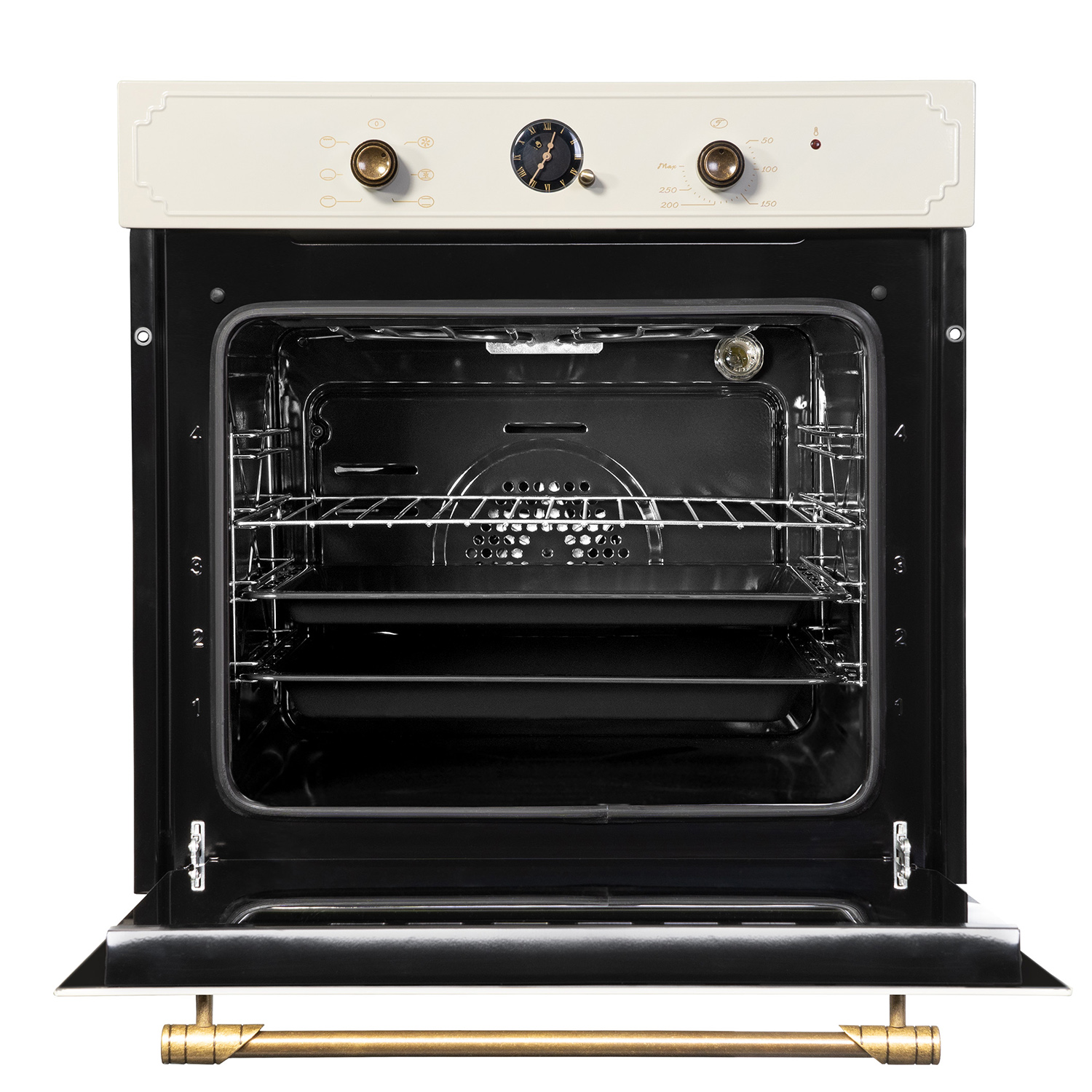 Электрический духовой шкаф E 138 X – это современное кухонное оборудование, которое позволяет выполнять приготовление различных блюд комфортно, безопасно и вкусно. Основным преимуществом данной модели является уникальный дизайн в стиле Country, многофункциональность и удобство эксплуатации. Приятным бонусом станет быстрый монтаж, а также высокий уровень безопасности при его использовании. Духовка имеет расширенную комплектацию: 2 противня и решетка. Наличие таймера с интервалом до 180 минут гарантирует простой контроль процесса готовки. Механическое управление с помощью поворотных переключателей не только удобно, но и подчеркивает индивидуальность вашей кухни. Аналоговый программатор поможет выбрать режим приготовления различных блюд.