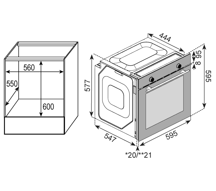 | Ниша для встраивания (ШхГхВ), мм | 560*550*600 |