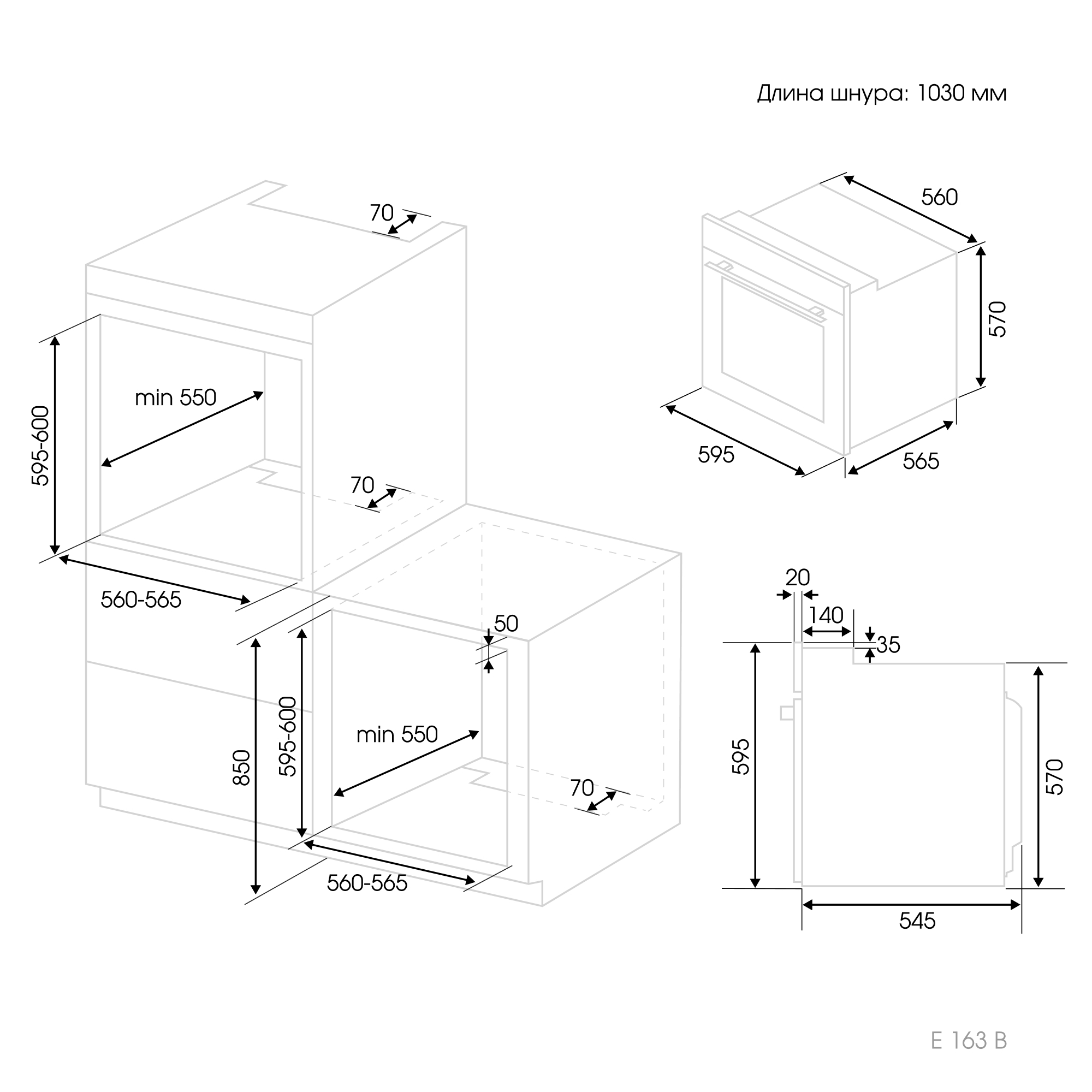 | Ниша для встраивания (ШхГхВ), мм | 560*550*590 |