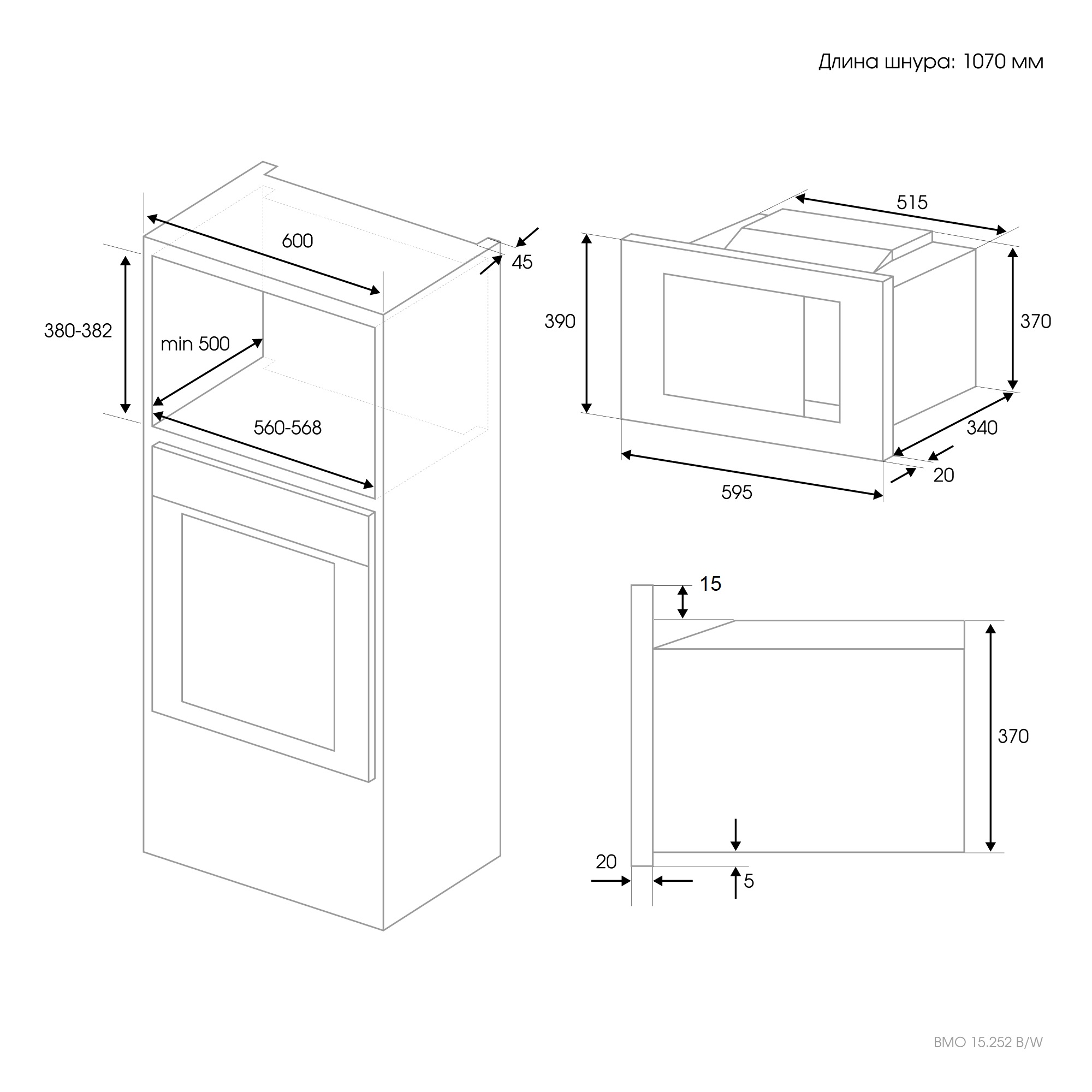 Функциональная и стильная микроволновка Zigmund & Shtain BMO 15.252 B — незаменимый помощник в каждом доме. Встраиваемый тип установки гармонично дополнит интерьер и подчеркнет стилистику кухни.