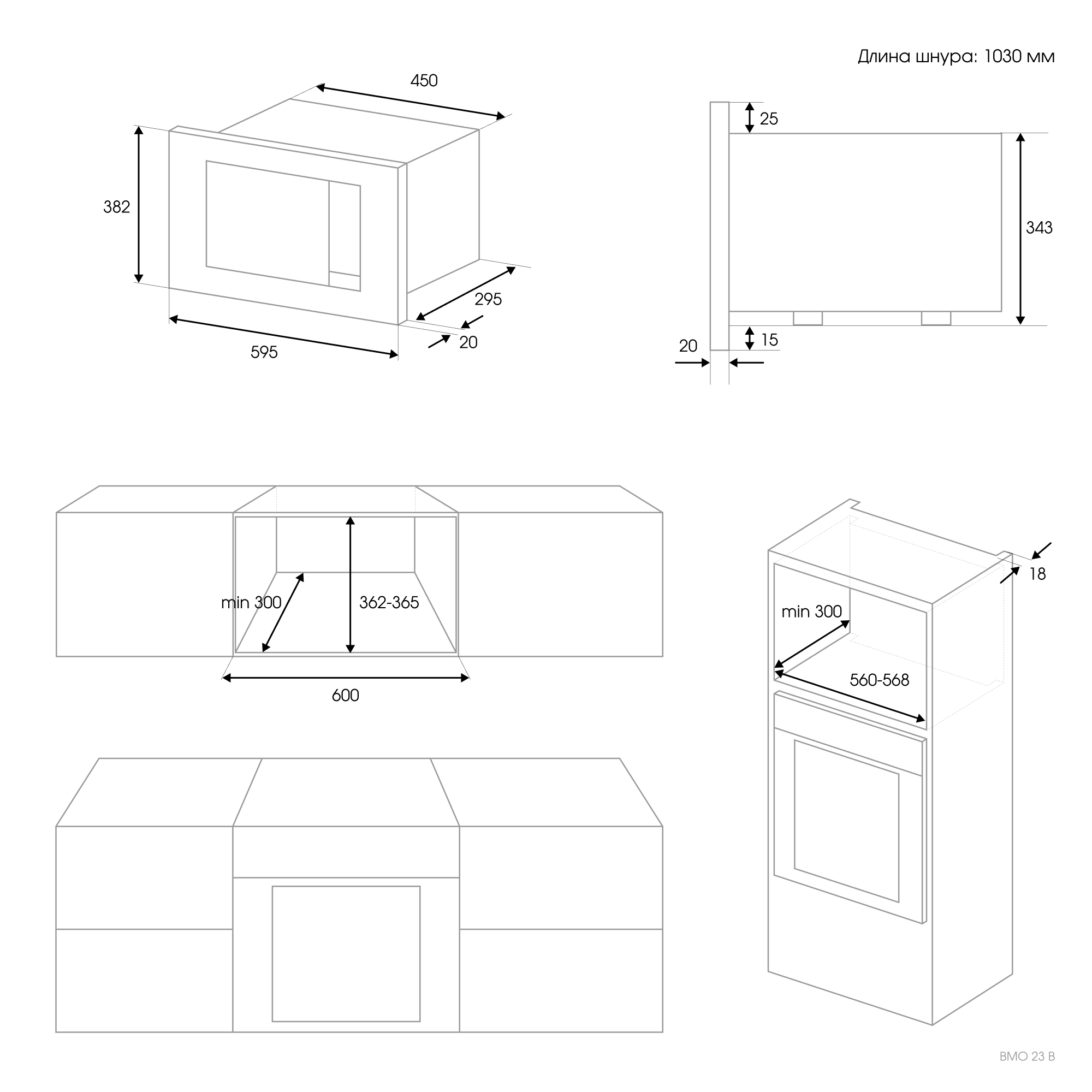 Микроволновая печь BMO 23 B встраивается в полку глубиной 30 см, позволяя максимально