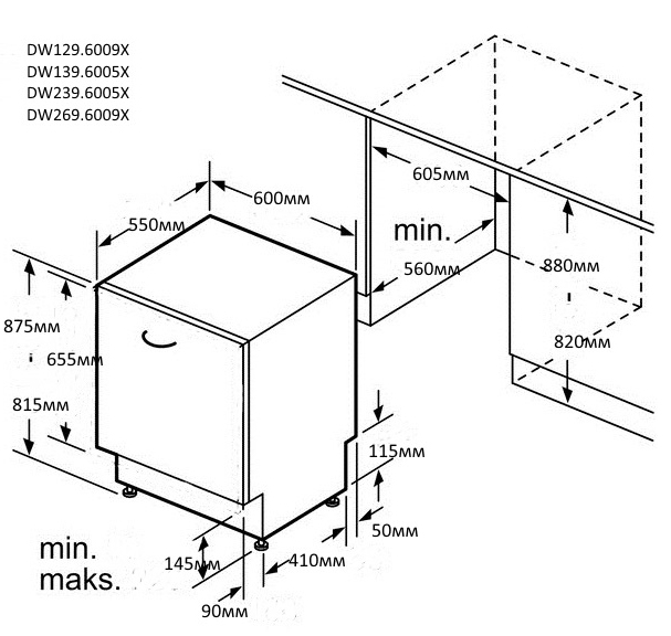 | Размеры для встраивания, см | 60х58х82 |