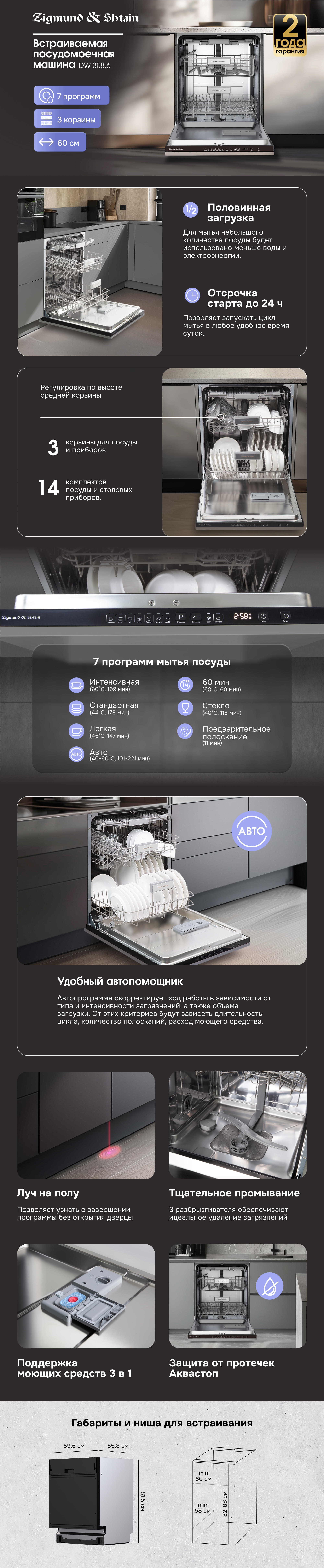 Посудомоечная машина Zigmund & Shtain DW 308.6