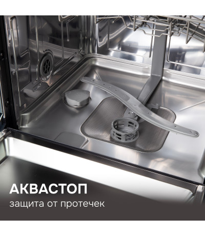 • Уровень шума 44 дБ при работе посудомойки сравним со звуком спокойной беседы за обеденным столом