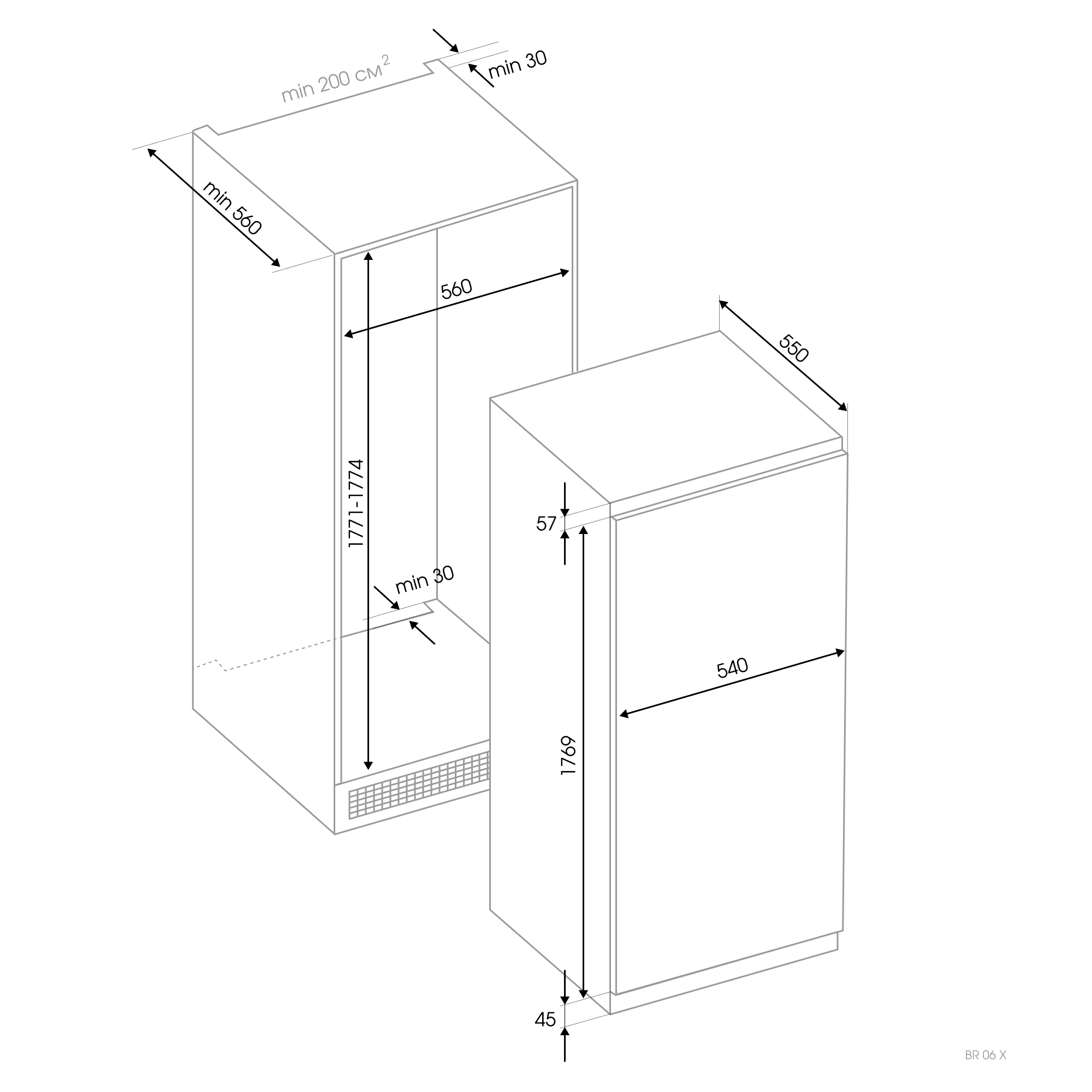 | Ниша для встраивания (ШхГхВ), мм | 560*560*1771-1774 |