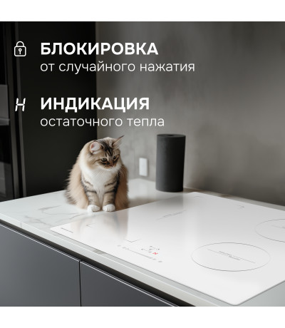 • Дополнительным бонусом является защита от перелива и перегрева – варочная поверхность в этих случаях автоматически выключается, защищая столешницу и кухонный гарнитур.
