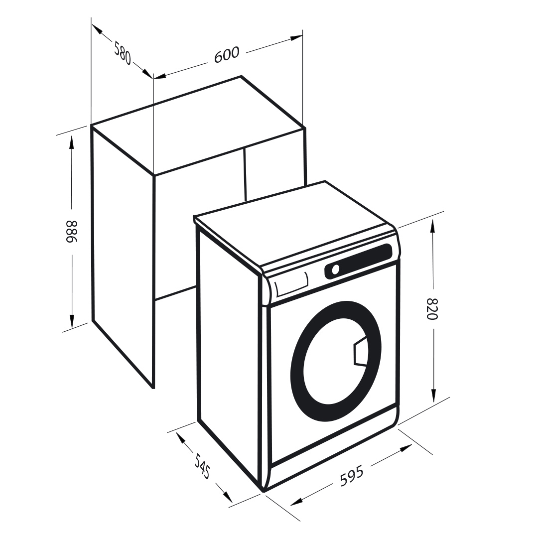 - Съемная верхняя крышка позволит встроить стиральную машину