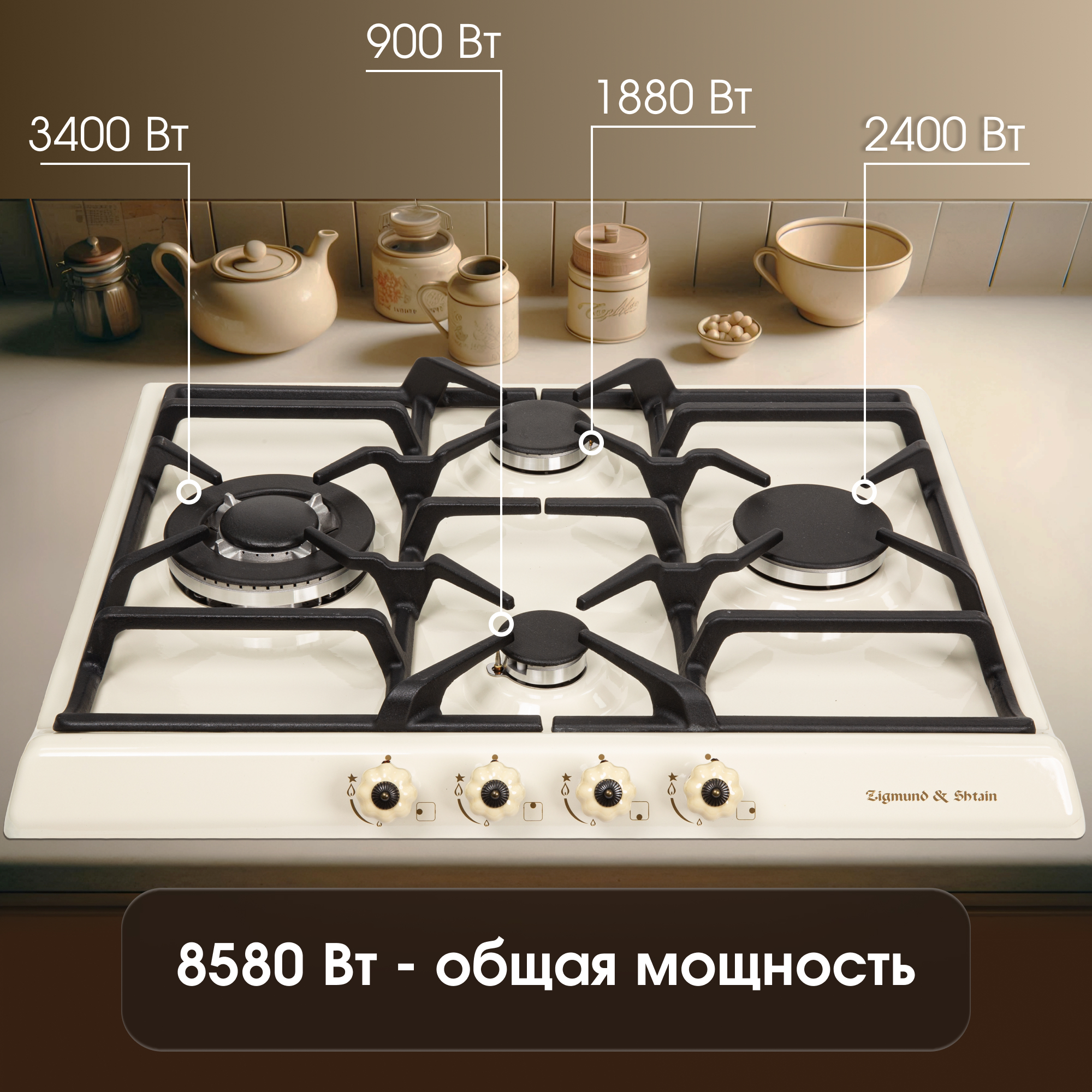 · Мощность горелок 900; 1880; 2400; 3400 Вт;