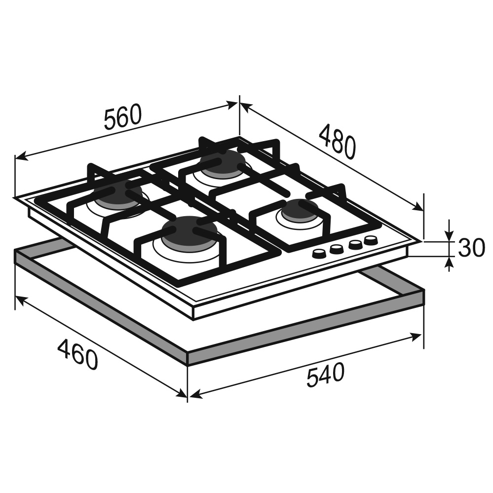 | Мощность горелок, Вт | 1000; 1750; 1750; 4000 |