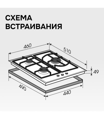 | Ниша для встраивания (ШхГхВ), мм | 440*490 |