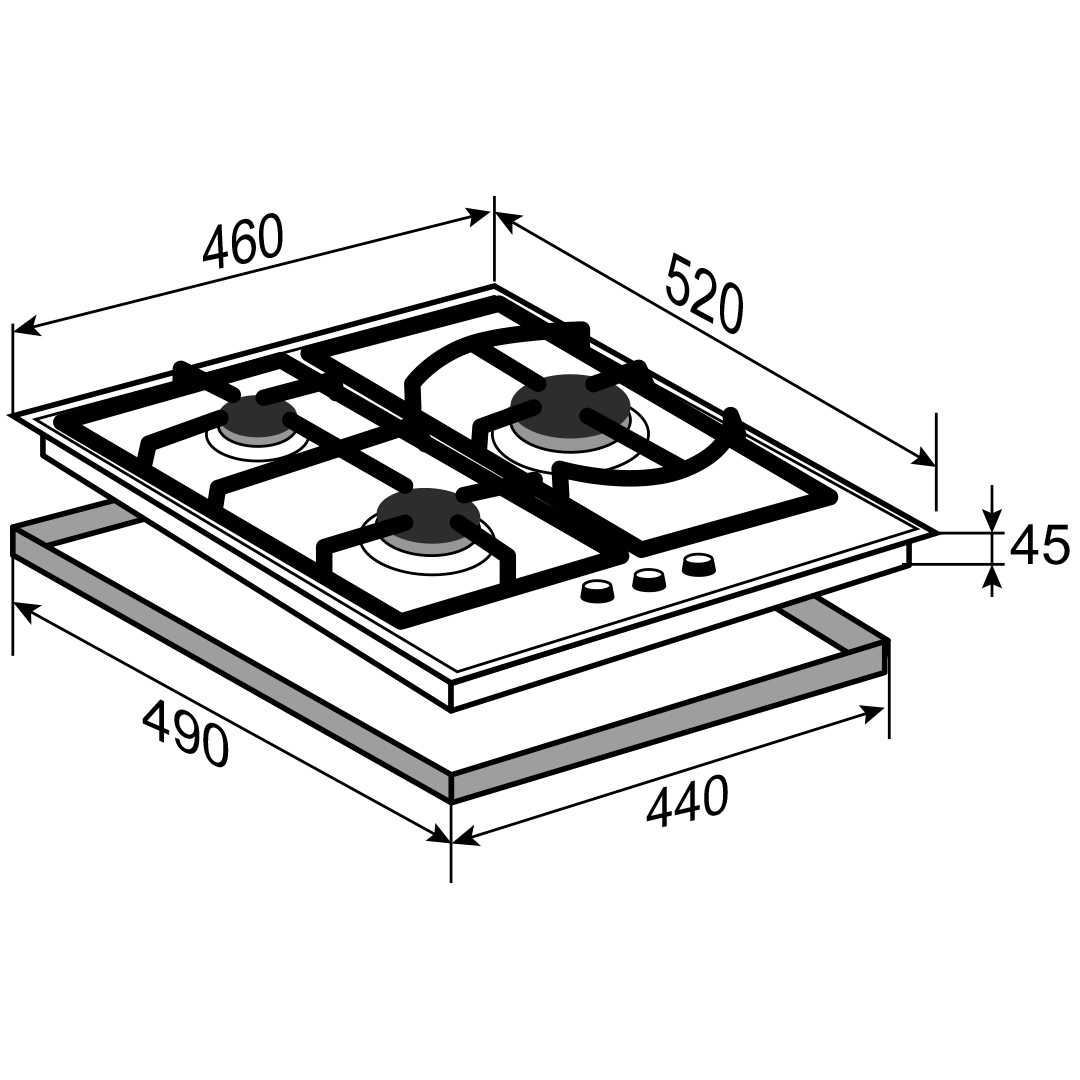 | Количество конфорок | 3 |