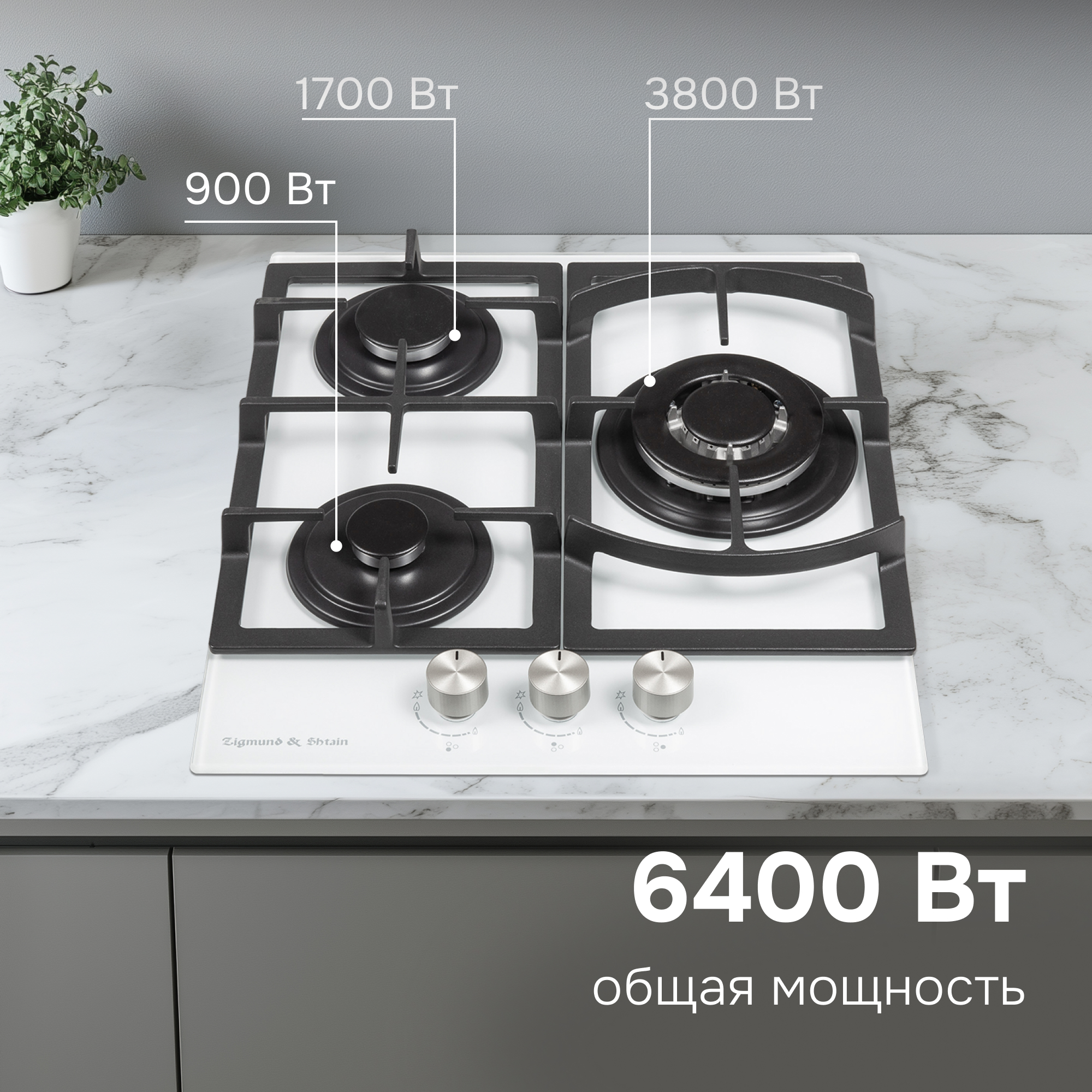 Газовая варочная панель из закаленного стекла Zigmund & Shtain M 26.4 W