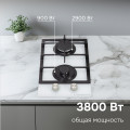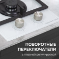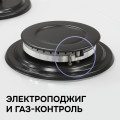 Варочная поверхность удобна и безопасна в использовании. Фронтально расположенные переключатели, оснащенные электроподжигом, позволяют осуществлять плавную регулировку пламени. Две конфорки мощностью 1000 Вт и 2500 Вт удовлетворят любые кулинарные потребности. Система газ-контроля обеспечит автоматическое отключение газа в случае отсутствия пламени.