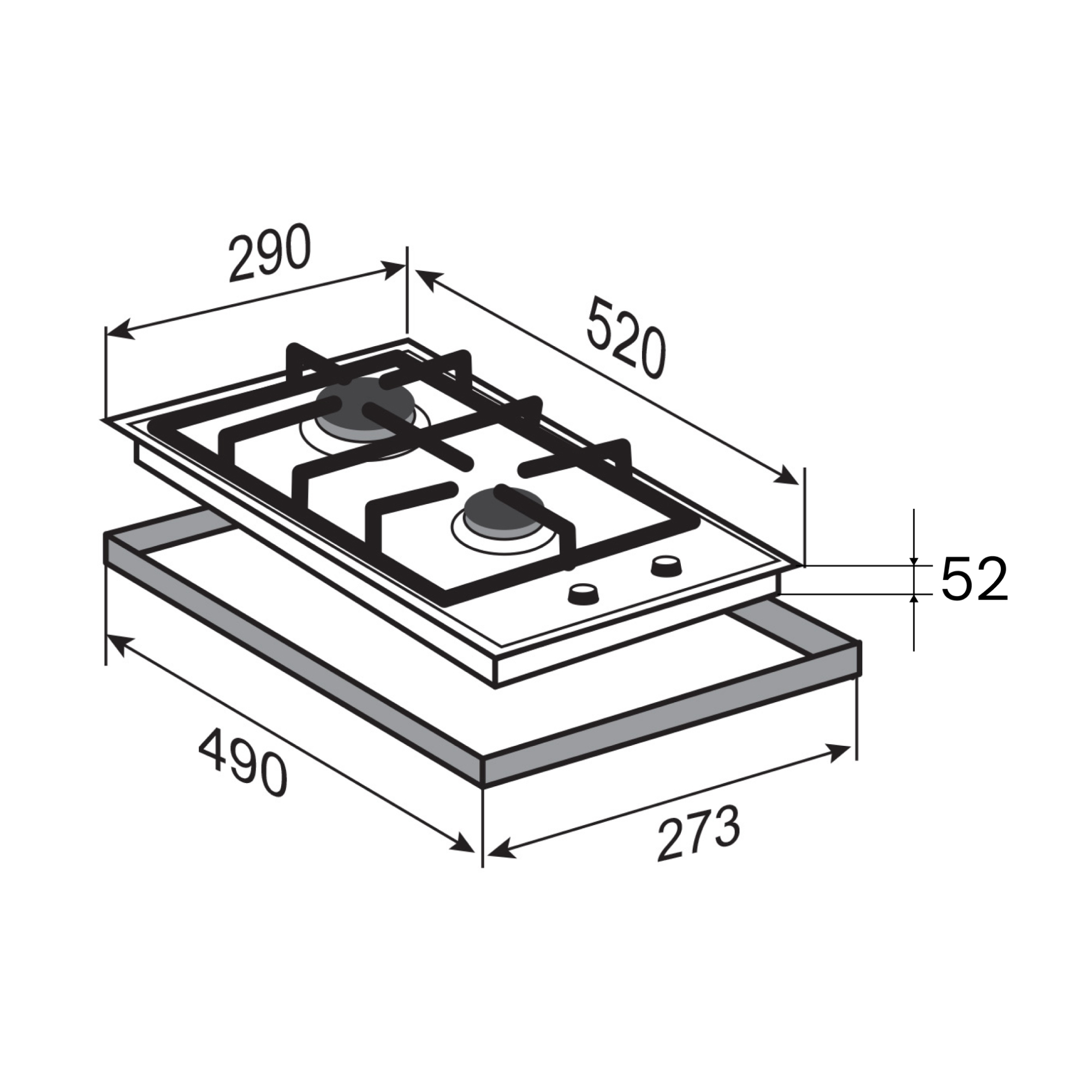 | Габариты (ШхГхВ), мм | 290*520*52 |