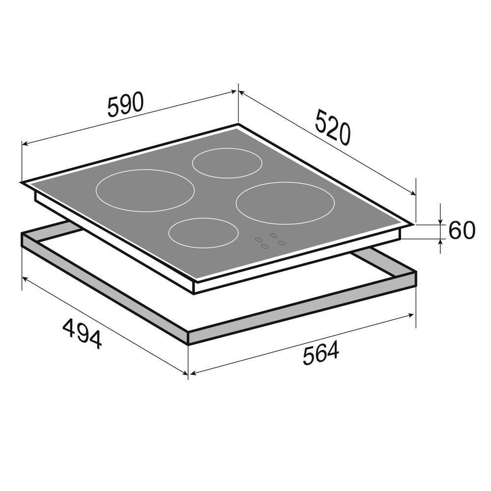 Размеры для встраивания: 564х494 мм, высота 60 мм