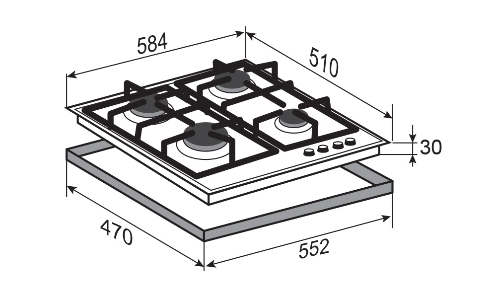 Варочная поверхность удобна и безопасна в использовании. Фронтально расположенные переключатели, оснащенные электроподжигом, позволяют осуществлять плавную регулировку пламени. Система газ-контроля обеспечит автоматическое отключение газа в случае отсутствия пламени.