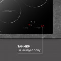 - С помощью таймера до 99 минут можно выставить время выключения работы каждой из конфорок, что позволит безопаснее и легче контролировать процесс приготовления.