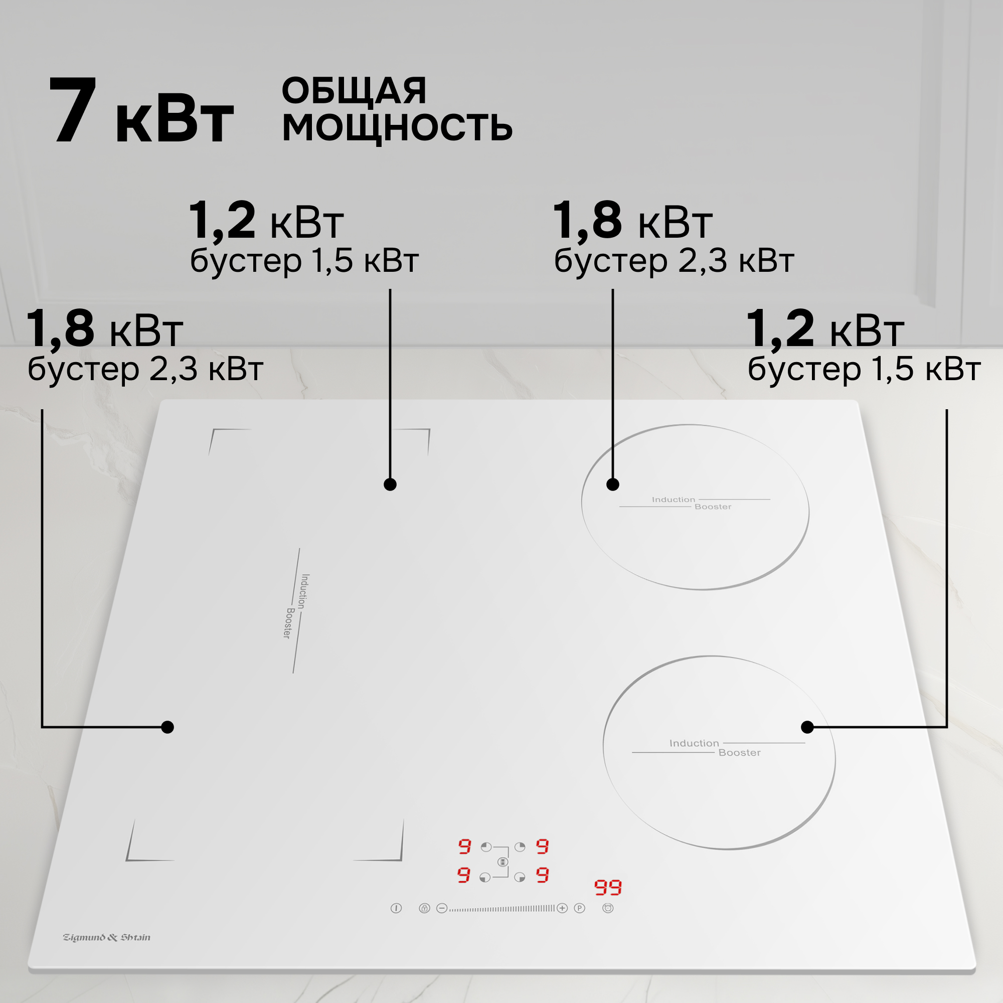 Индукционная стеклокерамическая поверхность Zigmund & Shtain CI 46.6 W легко впишется в кухню любого дизайна. Сочетание стиля, функциональности и европейского качества сделают ее вашим незаменимым помощником на кухне. Преимущество технологии индукционного нагрева в том, что конфорки нагревают непосредственно дно посуды, оставляя рабочую поверхность плиты холодной, а благодаря автоматическому определению диаметра посуды, площадь нагрева адаптируется под размер дна, что существенно экономит электроэнергию. При этом нужная температура достигается в 3 раза быстрее.