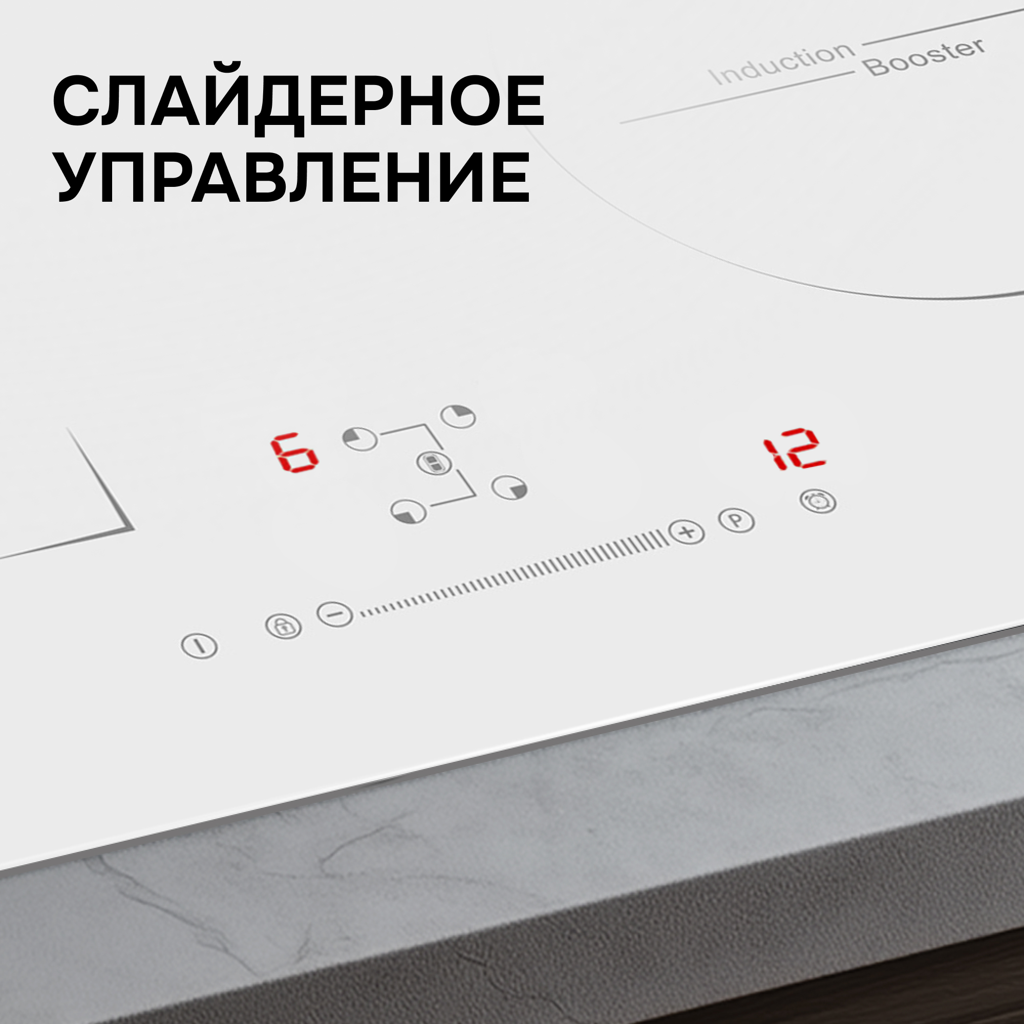 конфорки, а затем провести пальцем по слайдеру, пока на LED-дисплее не