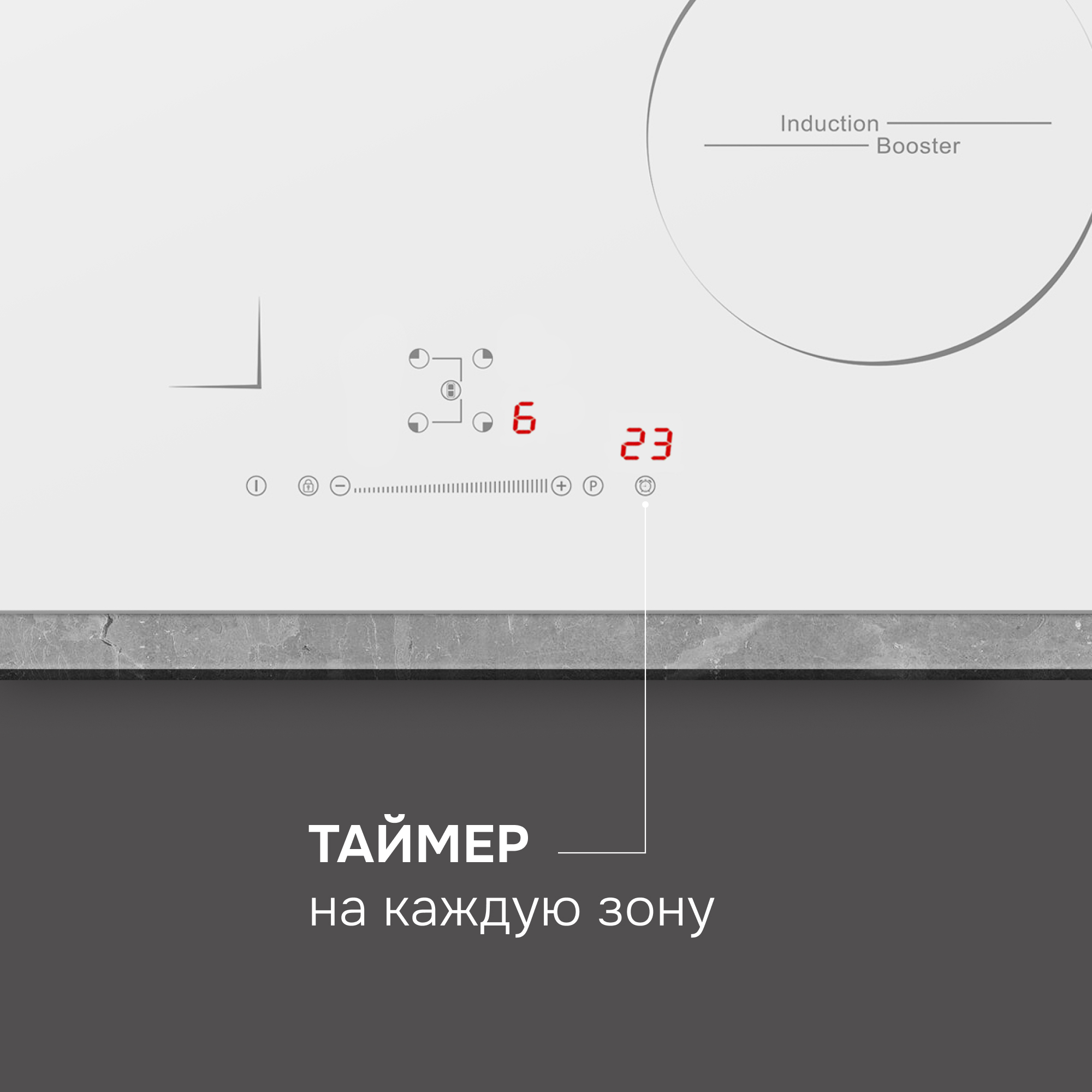 - Таймер отключения до 99 минут на каждую зону нагрева избавляет от