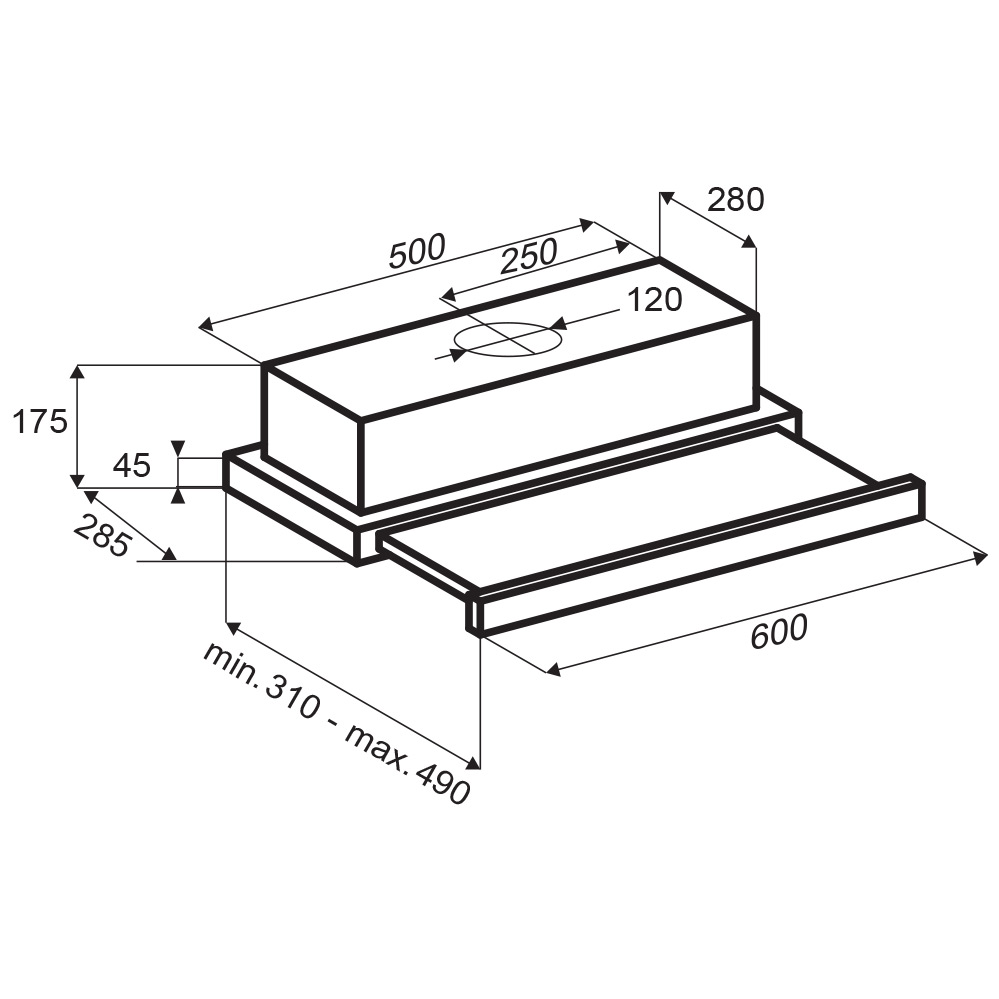 Встраиваемая установка сохранит стиль на кухне, не создавая громоздкость и не забирая пространство. Вытяжка будет лаконично и незаметно встроена в кухонный гарнитур, выполняя необходимые функции очищения воздуха. Чтобы включить вытяжку, необходимо выдвинуть панель.