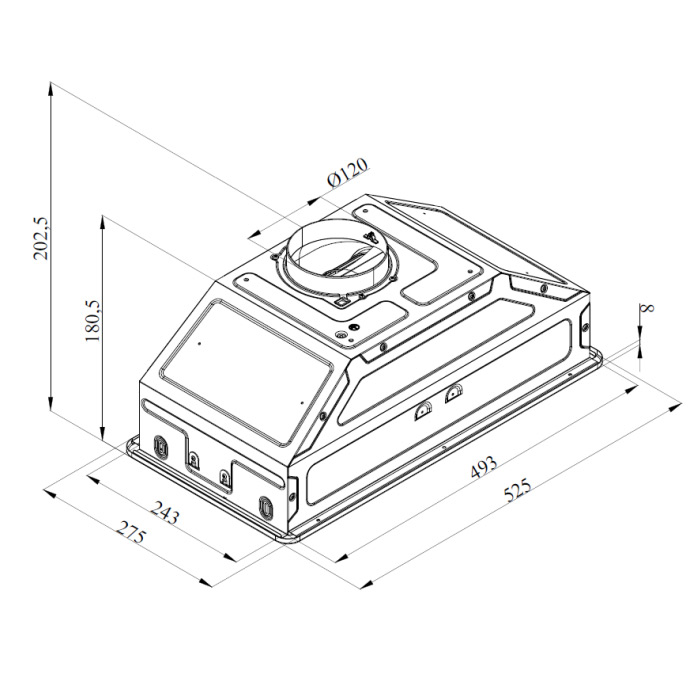 Компактные размеры вытяжки и встраиваемая установка смогут сохранить стиль и дизайн интерьера без потери эффективности в работе, так как производительность вытяжки составляет 450 куб.м/час. Этого будет более, чем достаточно, для маленьких и средних кухонь.