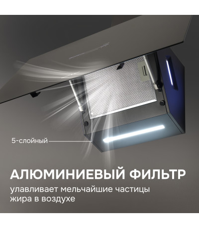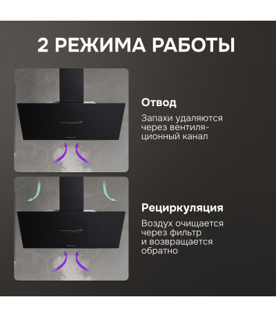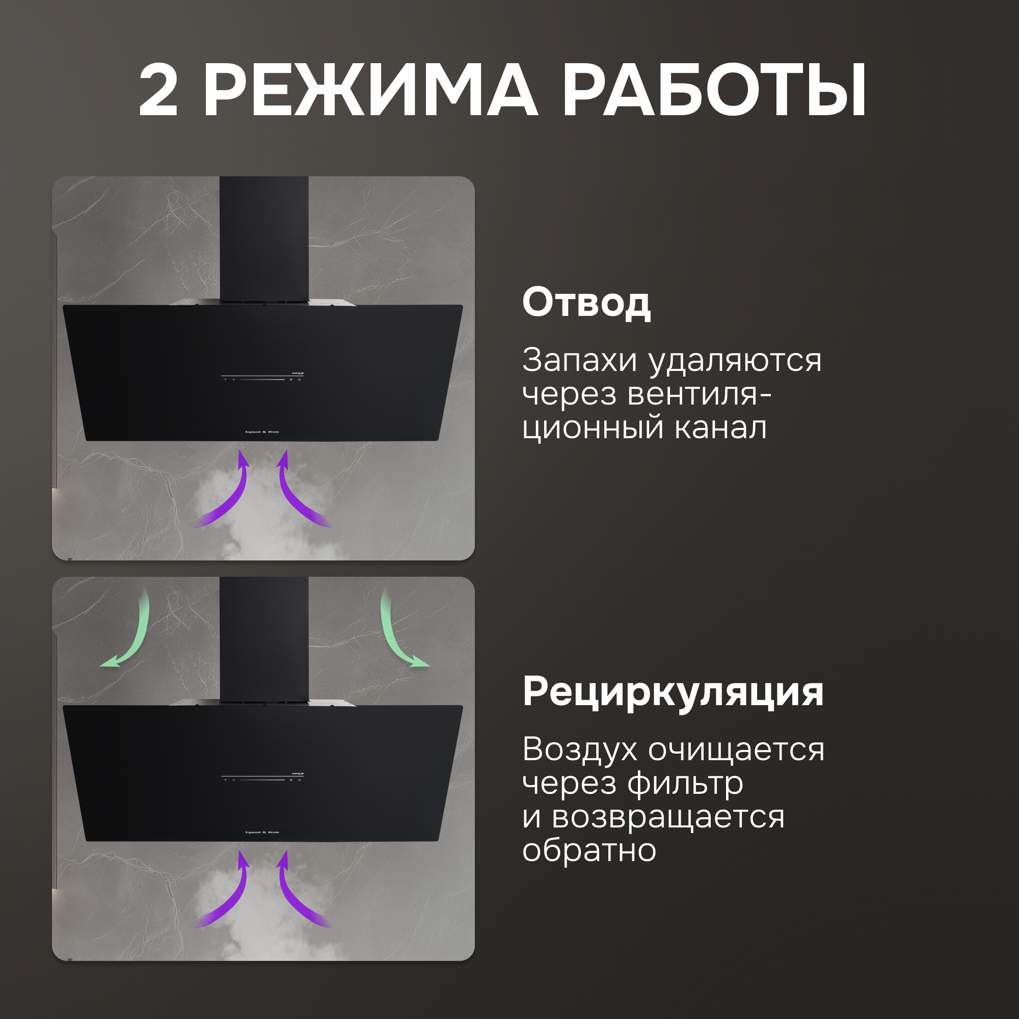 ● Работает как в режиме отвода, так и рециркуляции в зависимости от ваших потребностей и конструкционных особенностей кухни.