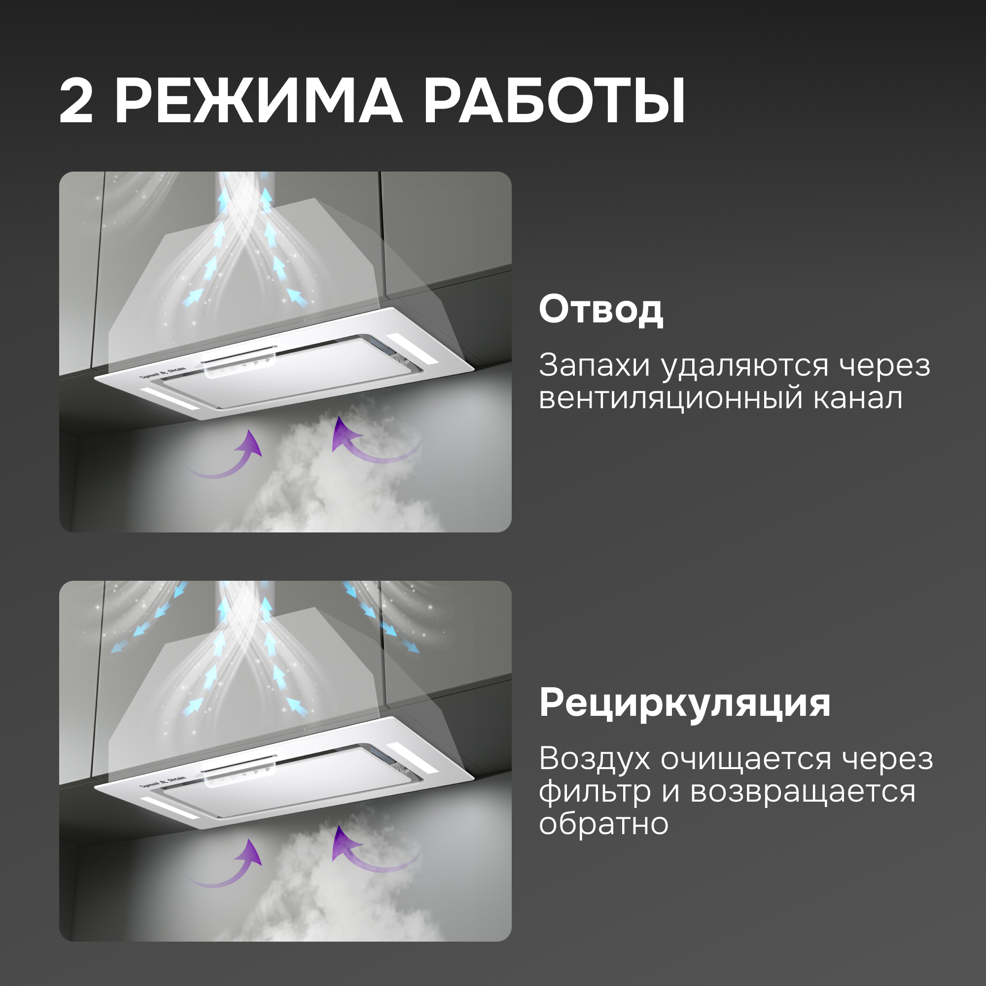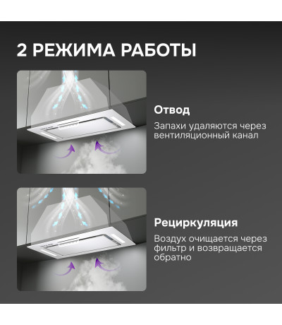 ● Работает как в режиме отвода, так и рециркуляции в зависимости от ваших потребностей.