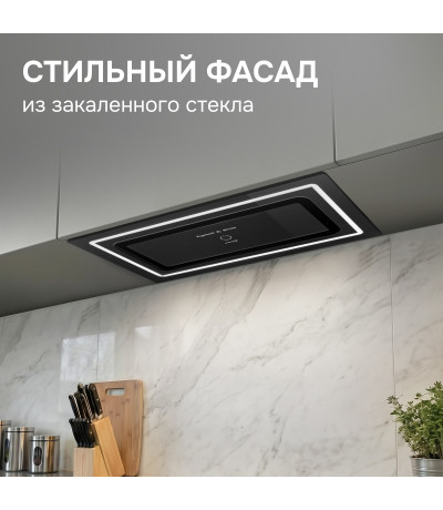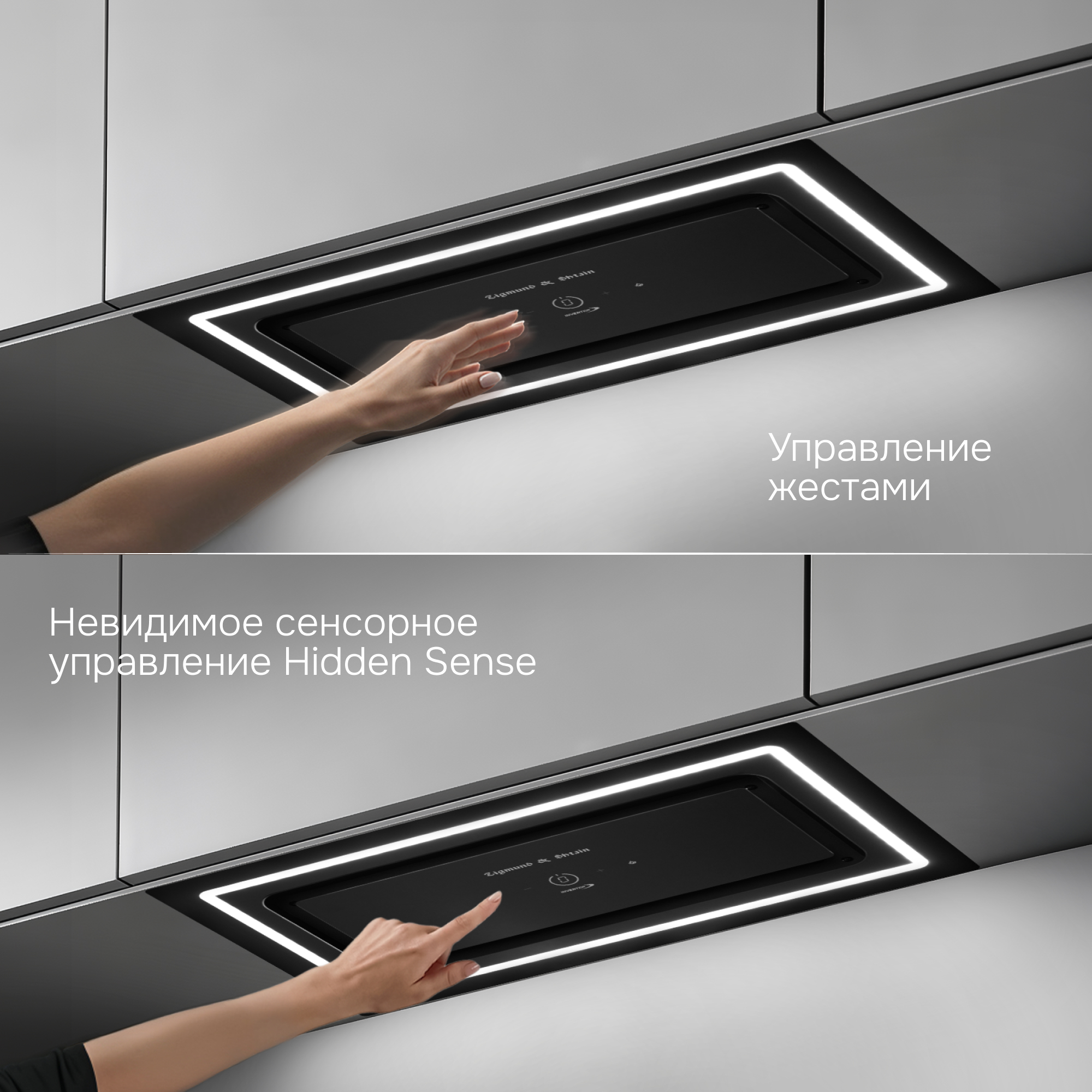и интуитивно понятного управления сенсорными кнопками или жестами. Сенсорное управление Hidden Sense полностью скрыто, когда вытяжка выключена.