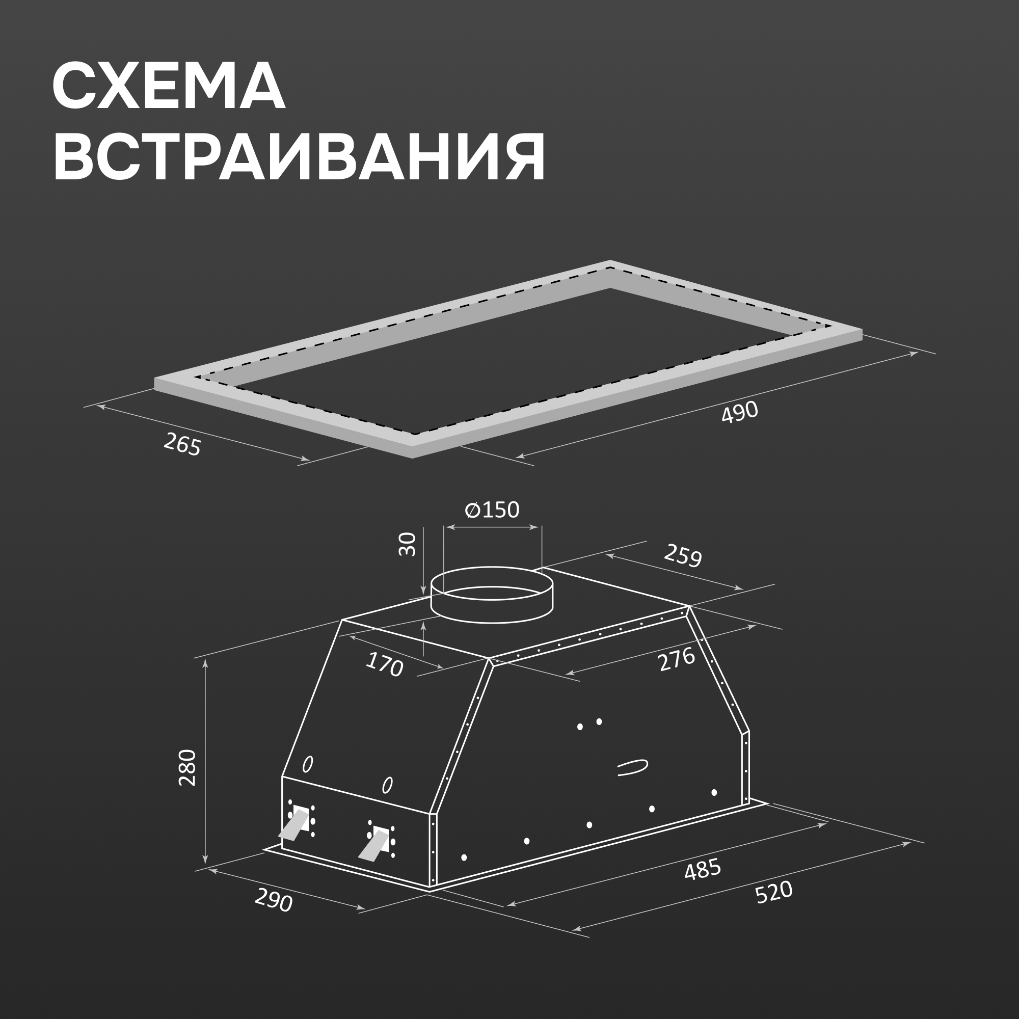 | Ниша для встраивания (ШхГхВ), мм | 490*265 |