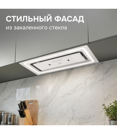 ● BLDC-мотор - наиболее энергоэффективное решение, он не уступает по функциональности обычному мотору, но при этом делает работу вытяжки практически бесшумной. Отсутствие дополнительных механических деталей облегчает конструкцию, позволяет уменьшить размеры мотора и одновременно обеспечивает долгий срок службы вытяжки.