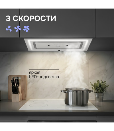 ● Работает как в режиме отвода, так и рециркуляции в зависимости от ваших потребностей и конструкционных особенностей кухни.