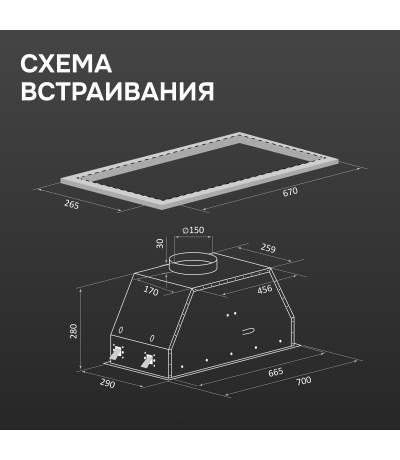 | Ниша для встраивания (ШхГхВ), мм | 670*265 |