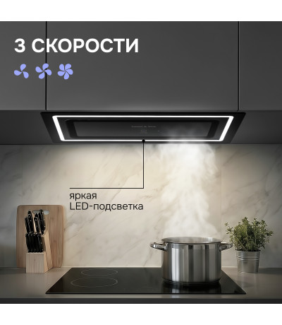 ● Работает как в режиме отвода, так и рециркуляции в зависимости от ваших потребностей и конструкционных особенностей кухни.