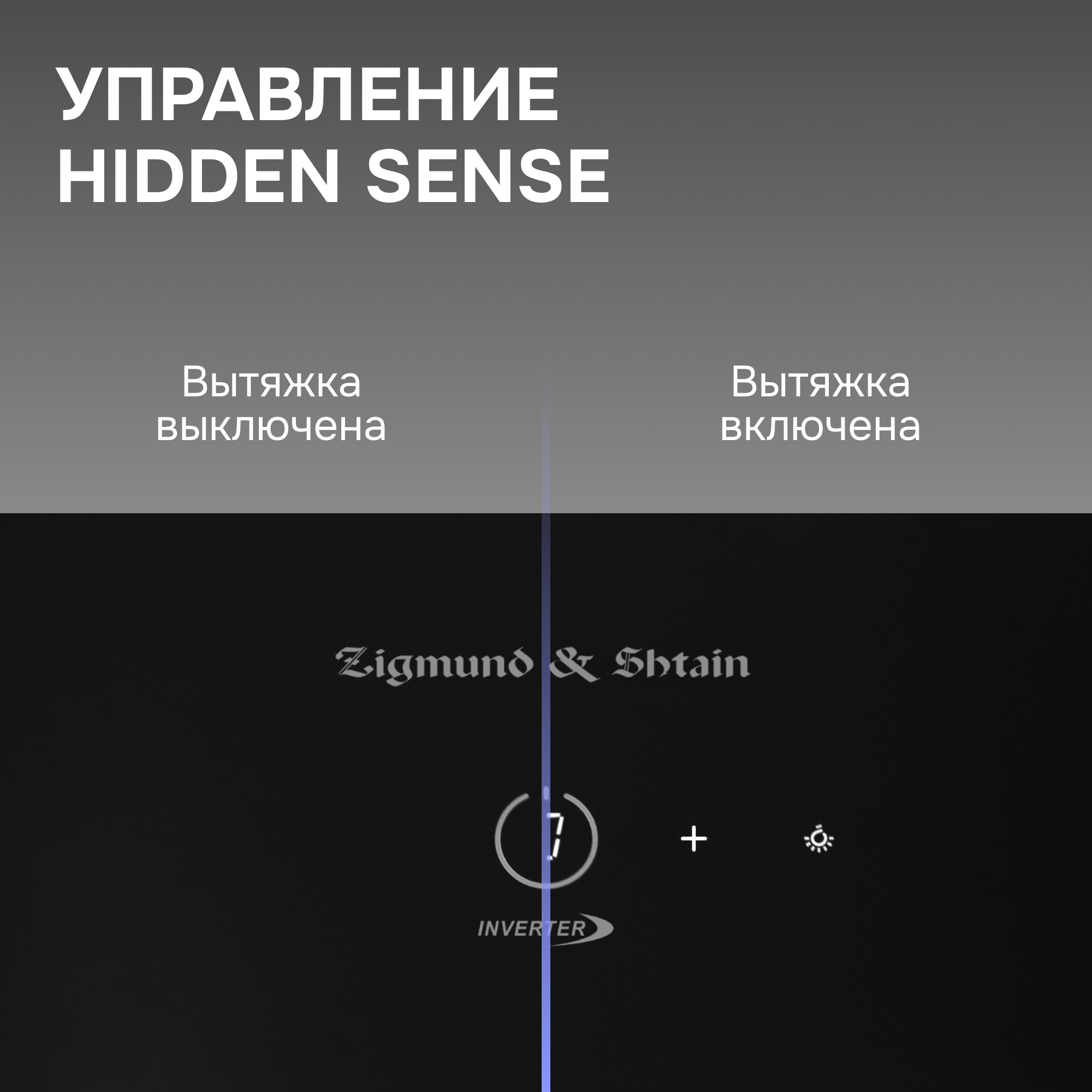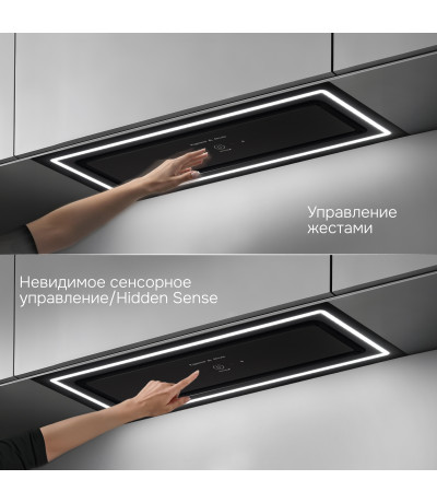 и интуитивно понятного управления сенсорными кнопками или жестами. Сенсорное управление Hidden Sense полностью скрыто, когда вытяжка выключена.