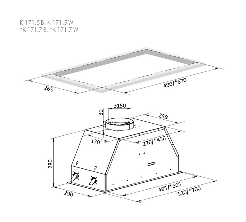 ● Вытяжка K 171.7 изготовлена из прочных, устойчивых к царапинам материалов. Стандартные
