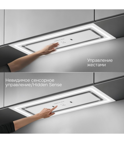 и интуитивно понятного управления сенсорными кнопками или жестами. Сенсорное управление полностью скрыто, когда вытяжка выключена.