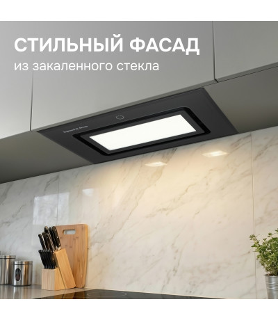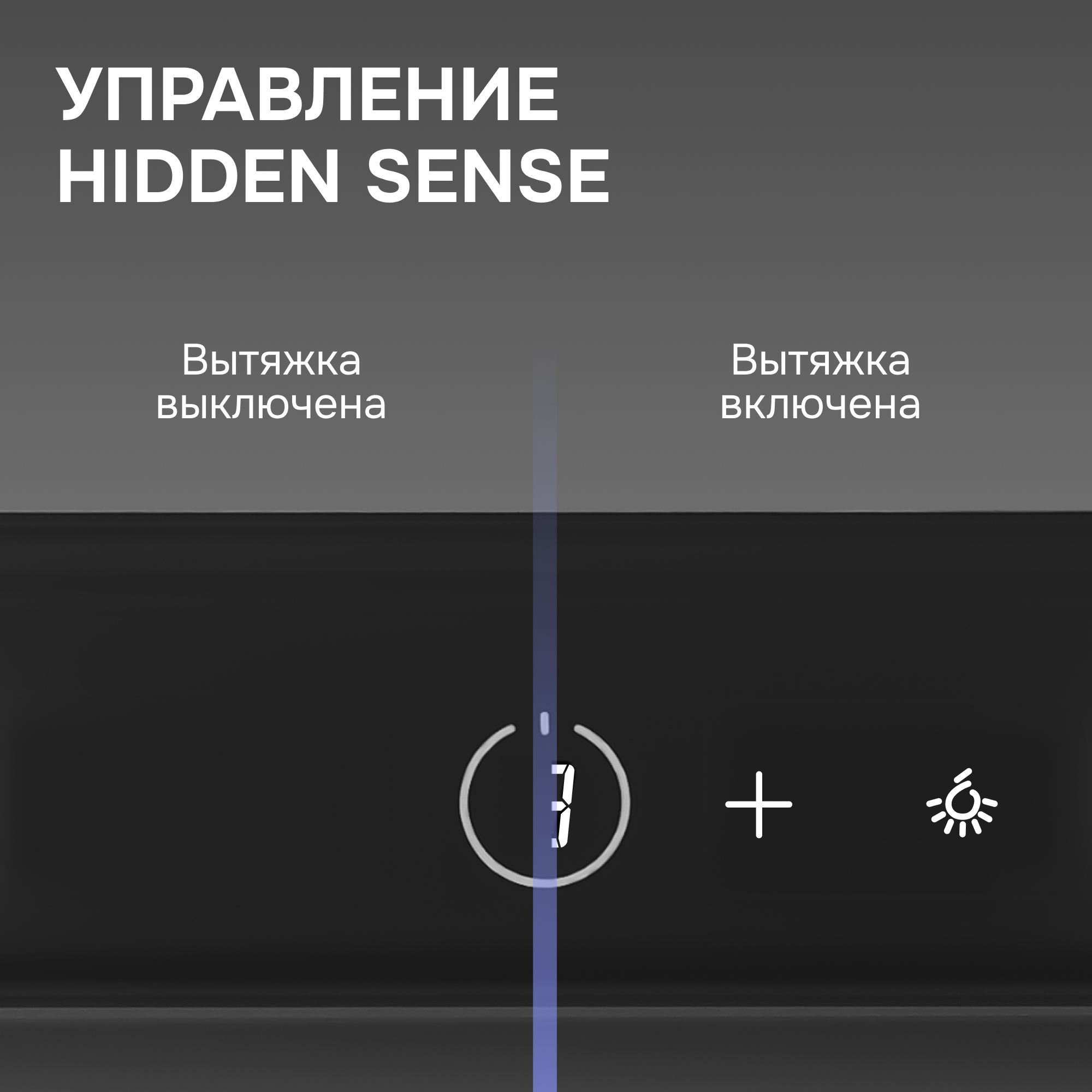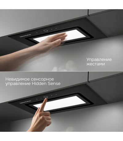 и интуитивно понятного управления сенсорными кнопками или жестами. Сенсорное управление Hidden Sense полностью скрыто, когда вытяжка выключена.