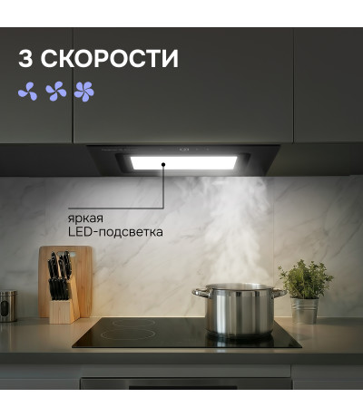 ● Управление жестами позволяет настраивать скорость работы вытяжки, не