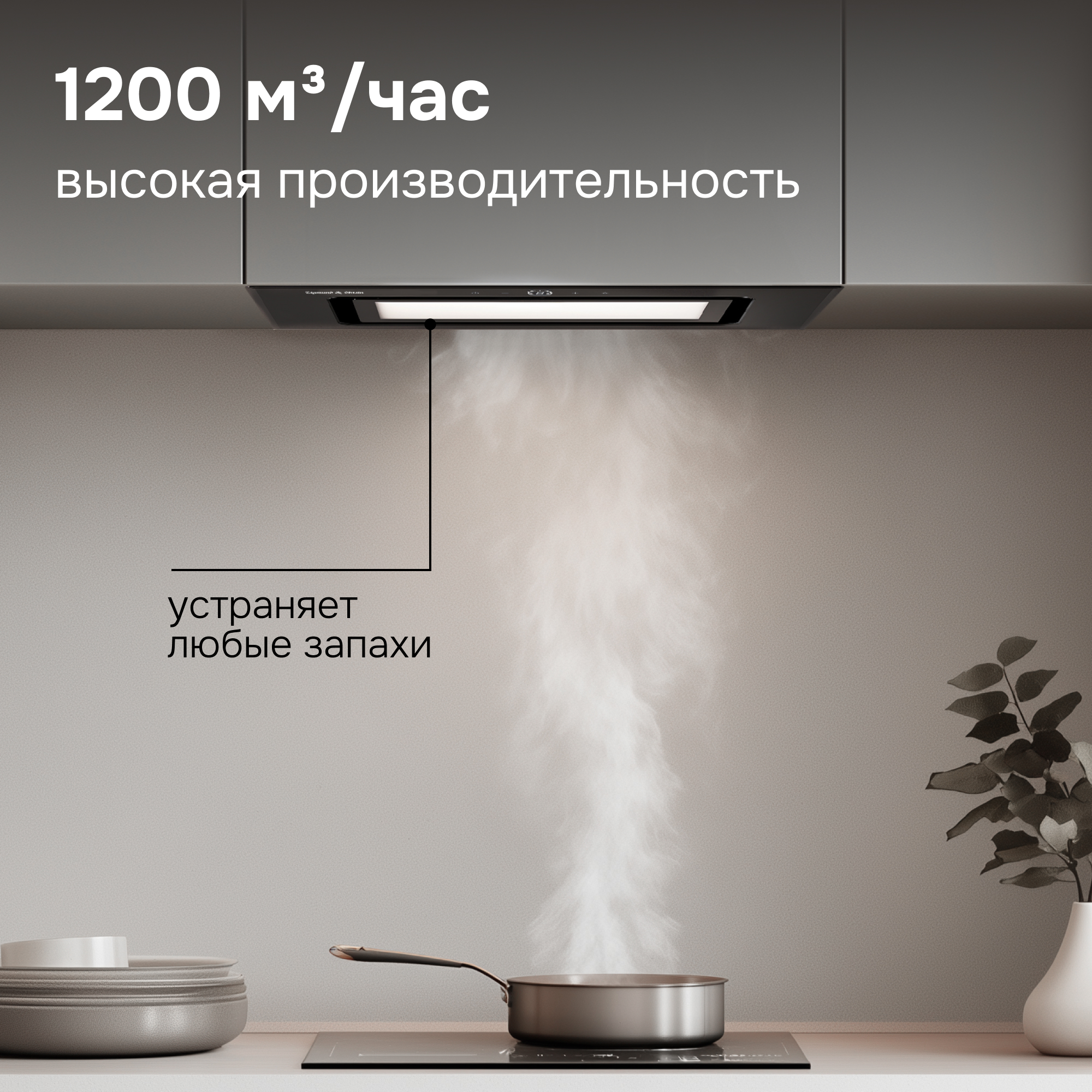 ● Высокая производительность 1200 м³/час рассчитана на работу в любом типовом помещении кухни.