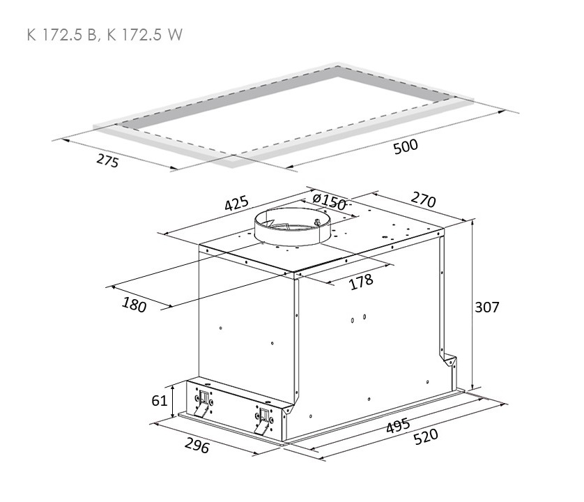 ● Вытяжка K 172.5 изготовлена из прочных, устойчивых к царапинам материалов. Стандартные