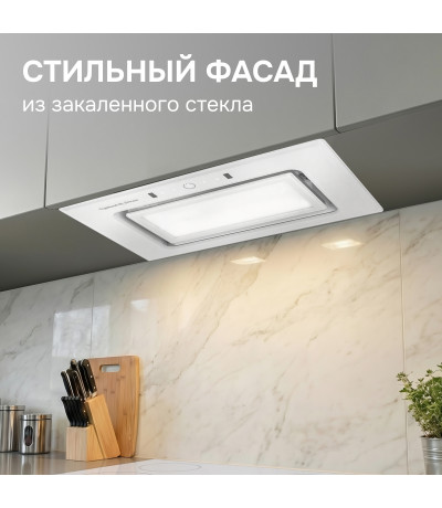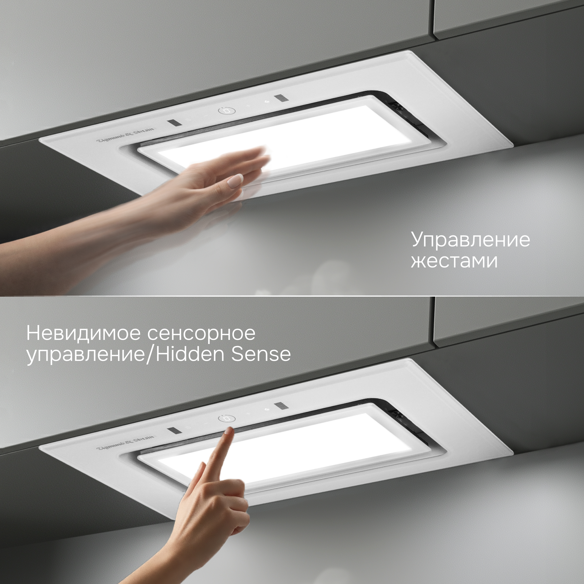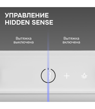 и интуитивно понятного управления сенсорными кнопками или жестами. Сенсорное управление Hidden Sense полностью скрыто, когда вытяжка выключена.