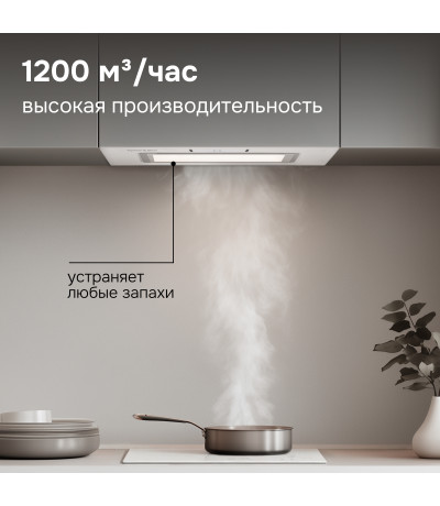 ● Высокая производительность 1200 м³/час рассчитана на работу в любом типовом помещении кухни.