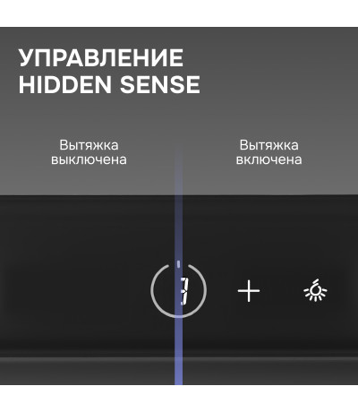 и интуитивно понятного управления сенсорными кнопками или жестами. Сенсорное управление Hidden Sense полностью скрыто, когда вытяжка выключена.