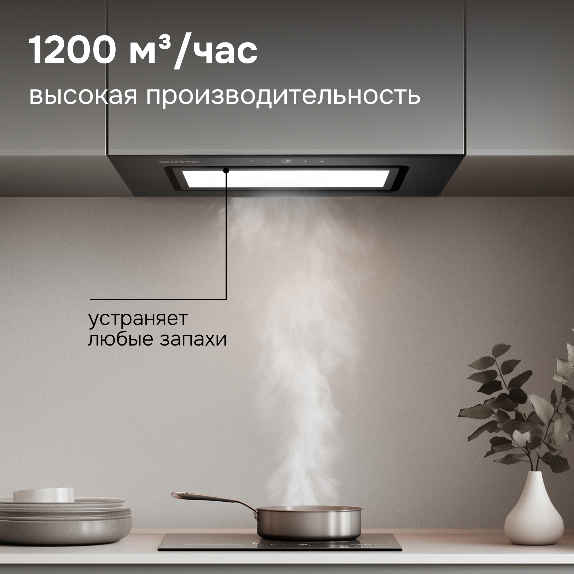 ● Высокая производительность 1200 м³/час рассчитана на работу в любом типовом помещении кухни.