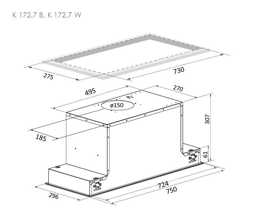 ● Вытяжка K 172.7 изготовлена из прочных, устойчивых к царапинам материалов. Стандартные