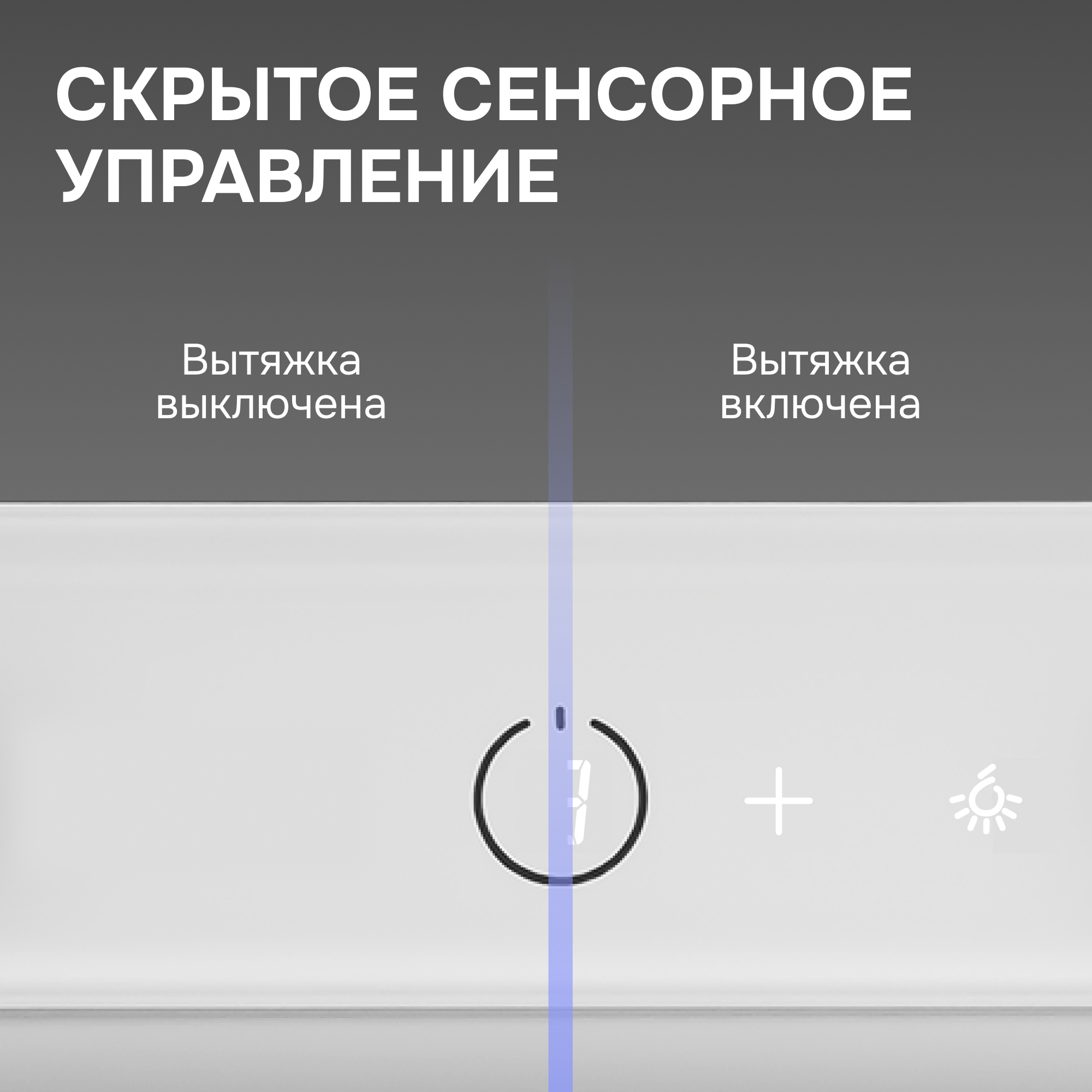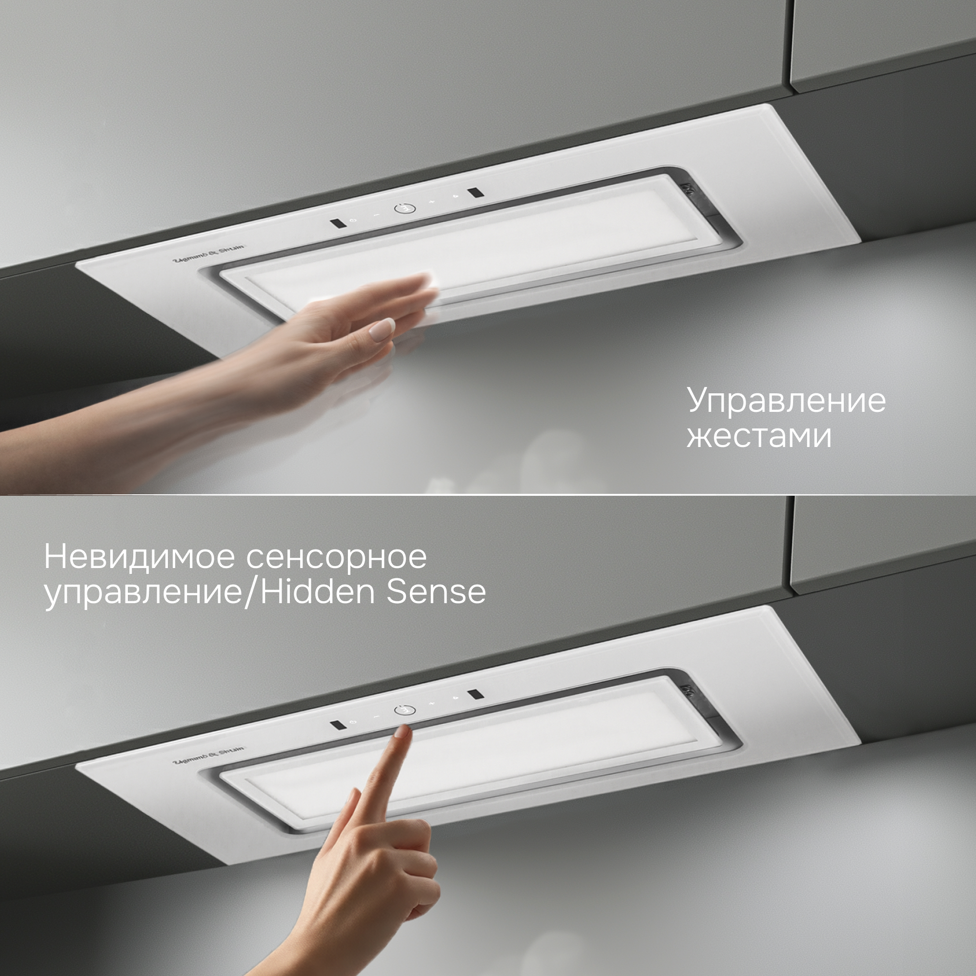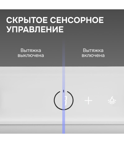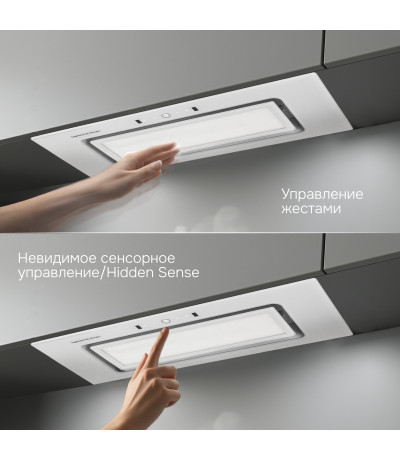 и интуитивно понятного управления сенсорными кнопками или жестами. Сенсорное управление Hidden Sense полностью скрыто, когда вытяжка выключена.