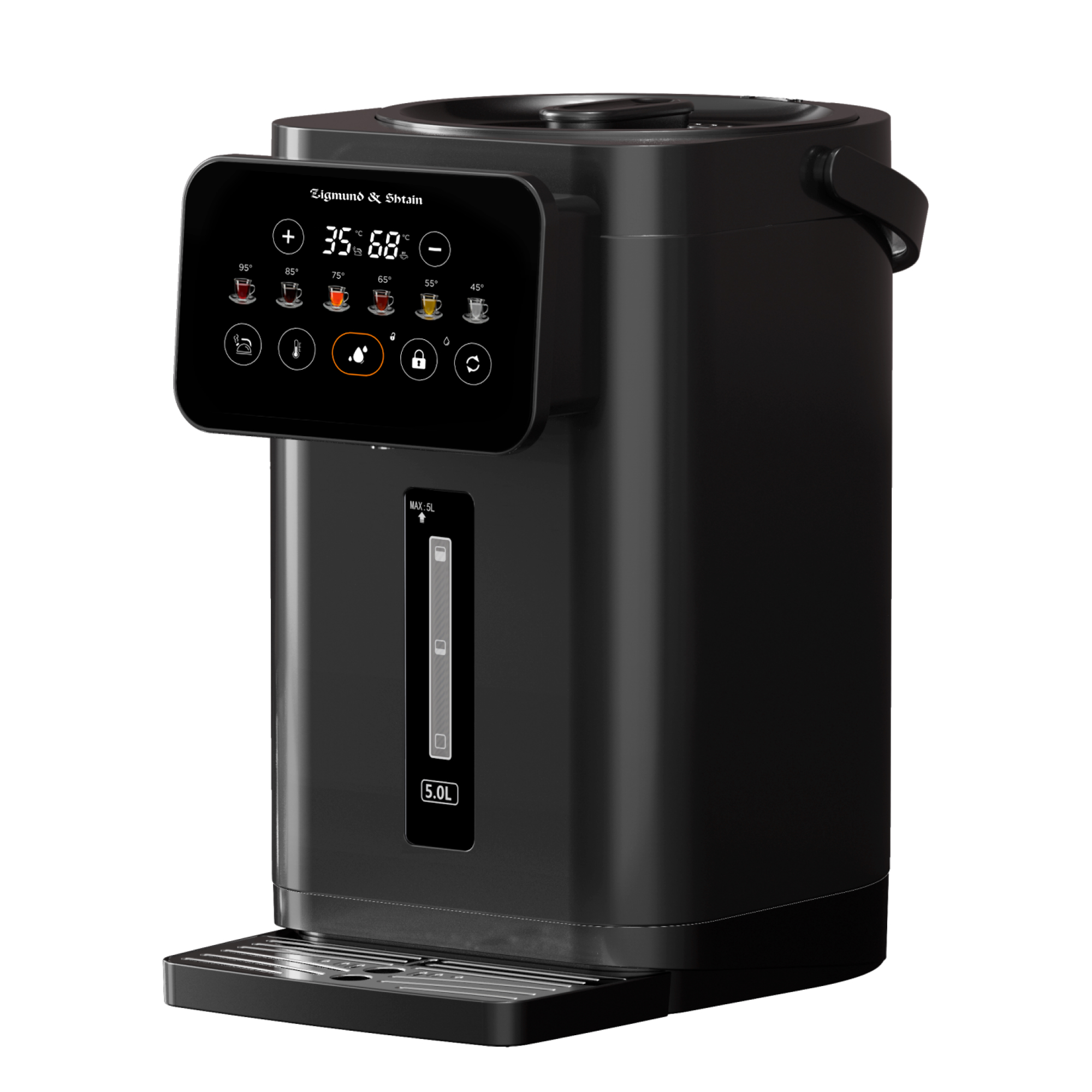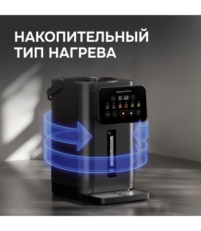 Электрический термопот ZTP-950 от Zigmund & Shtain – вместительный и функциональный прибор объемом 5 литров в стильном черном исполнении. Он обеспечивает поддержание заданной температуры в диапазоне от 35 до 95°С с 6 уровнями нагрева, что позволяет легко подобрать комфортный режим для любых нужд.