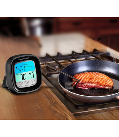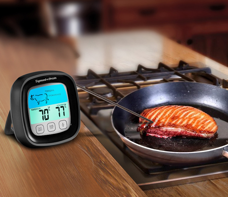 Термощуп - устройство, которым легко измерить температуру блюда благодаря металлическому наконечнику, похожему на иглу. Его обычно используют для приготовления стейка, барбекю, запекания птицы, говядины и всех прочих мясных блюд. Но на этом его применение не ограничивается. Тремощуп станет отличным помощником для замера температуры детского питания, напитков и выпечки. Данная модель имеет встроенный таймер до 100 минут, который издает звуковой сигнал, когда блюдо достигает необходимой температуры или закончится время.