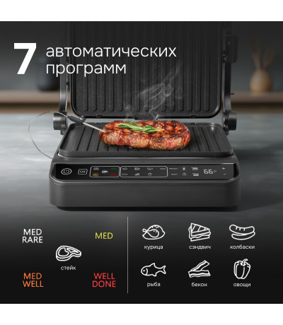 Гриль Grillmeister ZEG-934 – это инновационный прибор с сенсорным управление и 7 автоматическими программами. Вы выбираете только вид продукта (программу), а температура и время приготовления выставляется автоматически.